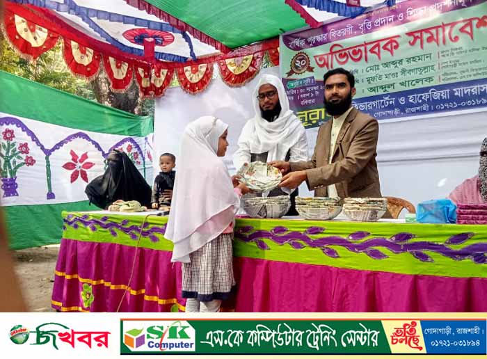 রাজশাহীর গোদাগাড়ীতে নূরানী কিন্ডারগার্টেনের বার্ষিক পুরস্কার বিতরণী, বৃত্তি প্রদান ও অভিভাবক সমাবেশ অনুষ্ঠিত হয়েছে। অনুষ্ঠানে ২০২৪ সালের কৃতি শিক্ষার্থীদের মাঝে পুরস্কার বিতরণ, বৃত্তি প্রাপ্ত ছাত্র/ছাত্রীদের বৃত্তির অর্থ, সনদপত্র প্রদান করা হয়েছে।