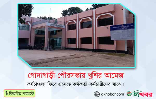 গোদাগাড়ী পৌরসভায় কর্মকর্তা কর্মচারীদের মধ্যে খুশির আমেজ বিরাজ করছে। প্রাণচাঞ্চল্য ফিরে এসেছে তাদের কাজে। দীর্ঘদিনের স্থবিরতা থেকে বের হয়ে এসেছে বর্তমান পৌর প্রশাসনে। বর্তমান অন্তর্বর্তিকালীন সরকারের মেয়াদে পৌরসভার দায়িত্বপ্রাপ্ত প্রশাসক ফয়সাল আহমেদের নেতৃত্বে এই পরিবর্তন সূচীত হয়েছে। এক দিকে যেমন পৌর ভবনের অভ্যন্তরীন সাজ সজ্জাসহ বিল্ডিং এর নতুনভাবে রং করা হয়েছে। অন্য দিকে কর্মকর্তা-কর্মচারীদের দীর্ঘ সময়ের বকেয়া বেতন পরিশোধ করা হয়েছে। যার ফলে সবার মাঝেই নব উদ্যোমে কাজ করার মানষিকতা তৈরি হয়েছে।